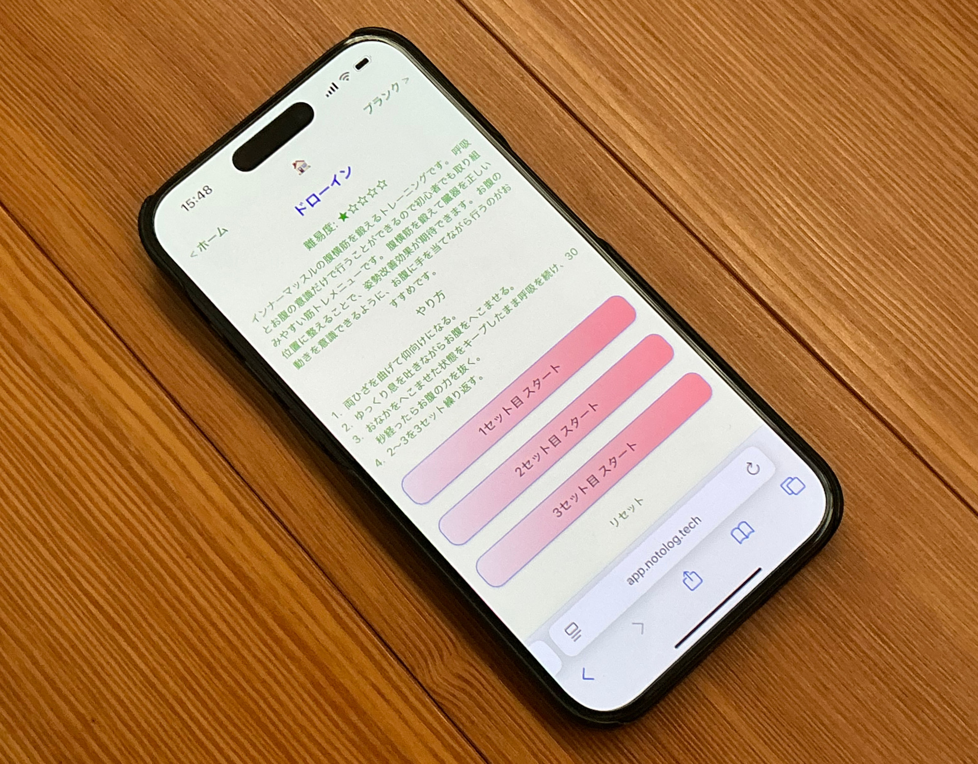 ドローイン、プランク、デッドバグなどの筋トレをしっかりやるためにタイマーを作りました。これらの筋トレは仰向けやうつ伏せになるので、時計やストップウォッチの画面を見ながら行うのは難しいです。