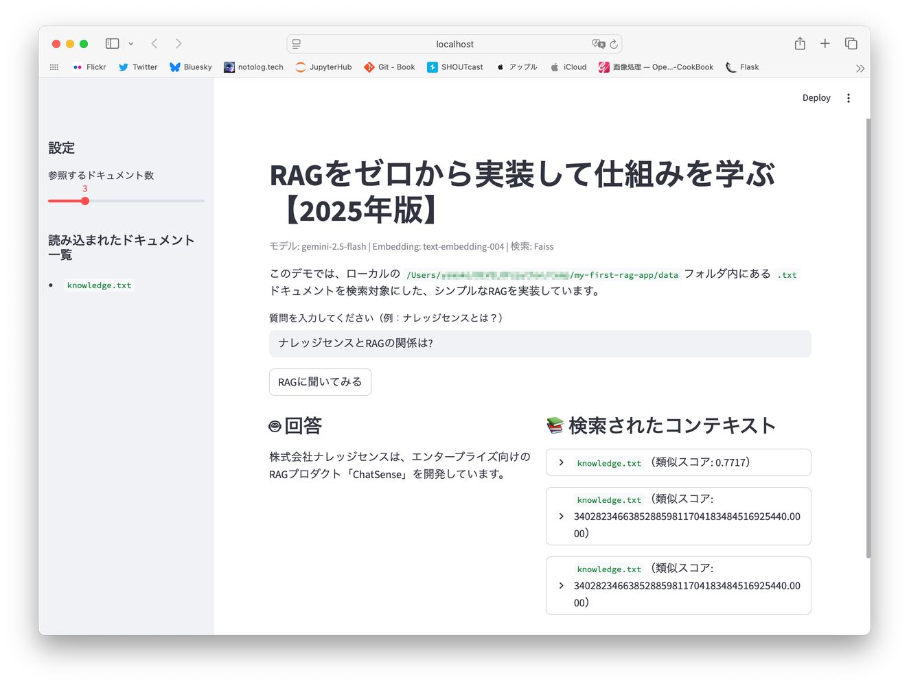 gemini-2.5-flashを使ったRAGアプリケーションが無事に動作しました!